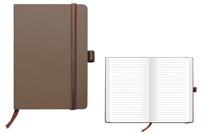 -Oblíbený linkovaný notes v elegantní hnědé barvě.