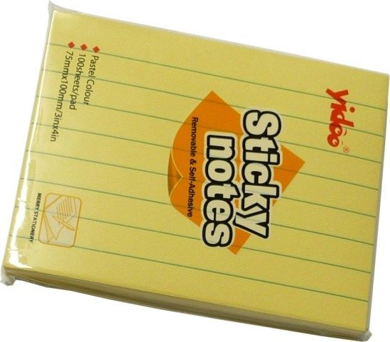 Samolepící papírový bloček žlutý s linkamiSamolepící bloček žlutý s linkami obsahuje 100 listů, které mohou být opakovaně použity. Listy nezanechávají stopy po použití a samovolně se neodlepují.