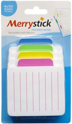 Samolepící bloček linkovaný, 4 barvy po 100 listech se záložkou, které mohou být opakovaně použity. Listy nezanechávají stopy po použití a samovolně se neodlepují.