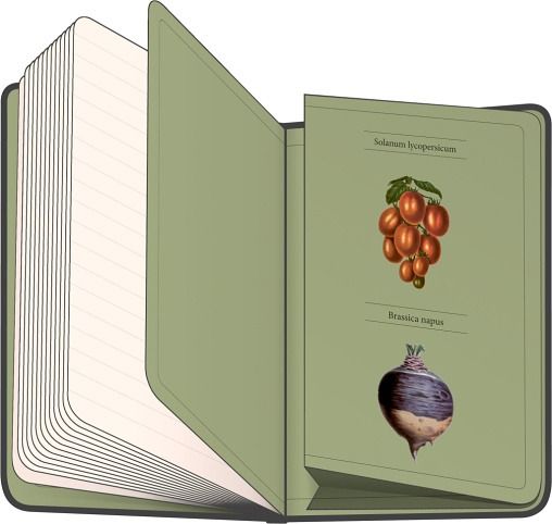 Notes v pevných deskách z kolekce Kateřiny Winterové s ilustracemi různorodé zeleniny, s uzavíráním na gumičku, kapsou na drobnosti a poutkem na tužku. Vevnitř najdete 172 linkovaných stran na žlutém papíře pro zapsání všech vašich nápadů.