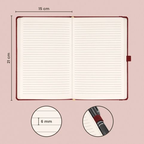 Linkovaný notes Aprint Neo ve vínovém provedení. Klasika i elegance, nejžádanější povrch, na který lze snadno razit firemní loga s jemnou strukturou.