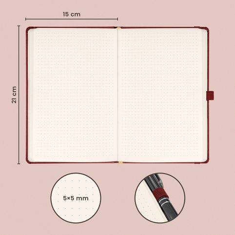 Tečkovaný notes Aprint Neo ve vínovém provedení. Klasika i elegance, nejžádanější povrch, na který lze snadno razit firemní loga s jemnou strukturou.