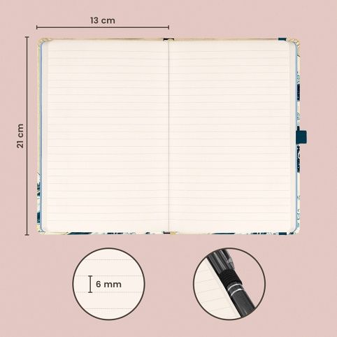 Kvalitní linkovaný notes v pevných deskách s uzavíráním na gumičku, poutkem na tužku a vnitřní kapsou na drobnosti. Uvnitř najdete 172 tečkovaných stran na žlutém papíře pro zapsání všech vašich nápadů. Linkovaný zápisník můžete použít jako deník, psát do něj hluboké myšlenky nebo pracovní poznámky.