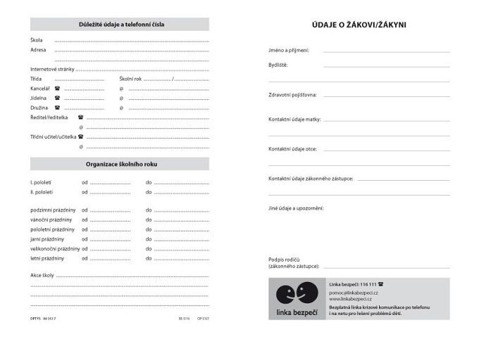 Žákovská knížka, neutrální podoba vhodná pro oba stupně, sešit A5, 32 str.