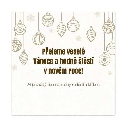 text: Přejeme veselé Vánoce a hodně štěstí v novém roce! Ať je každý den naplněný radostí a klidem.