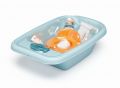 Modrá vanička, oranžový nočník, plenky a další příslušenství pro panenky. Délka vaničky 32 cm.