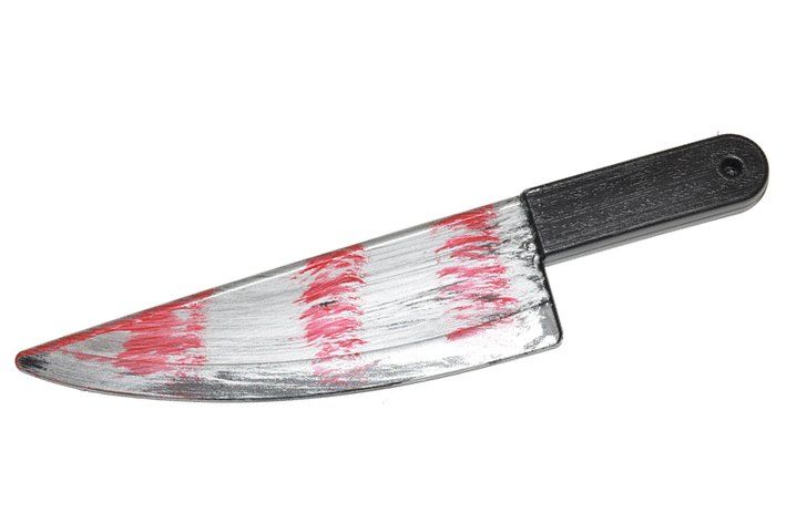 Doplněk ke karnevalové masce - krvavý nůž. Vyrobeno z plastu.
