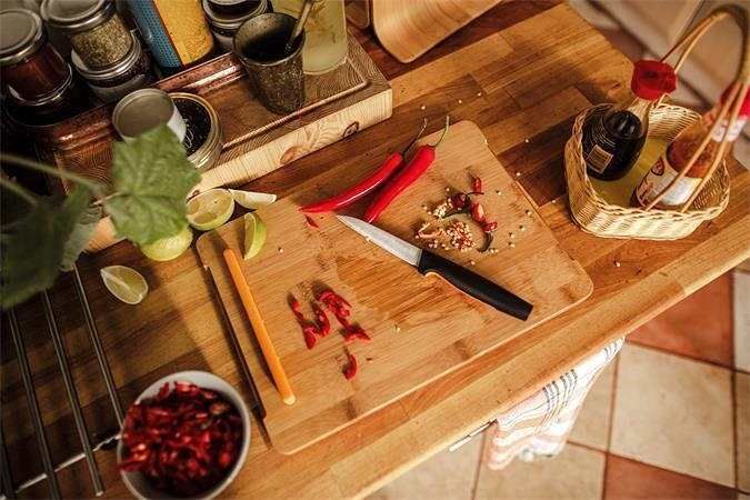 Víceúčelový okrajovací nůž z řady Fiskars Functional Form™, který se se svou 11 cm dlouhou čepelí výborně hodí pro krájení ovoce a zeleniny.