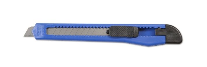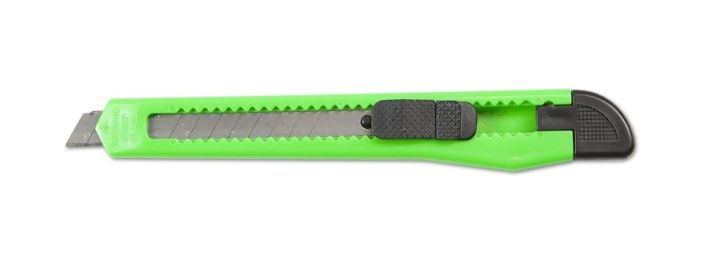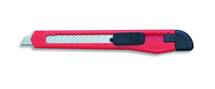 Odlamovací nůž s plastovým tělem o délce 13cm, šířce čepele 9mm. Možnost výměny nožů, uzavírací pojistka s protiskluzovým povrchem. Dodáván v mixu barev.