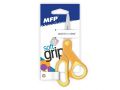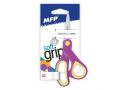 Dětské nůžky vhodné do školy, ale i pro domácí tvoření. Rukojeť je ergonomicky tvarovaná a přizpůsobená menším dětským ručičkám. Otvory na prsty jsou pogumované, díky tomu nůžky nekloužou a střih je rovný. Ostří je vyrobeno z tvrzené nerezavějící ocele.