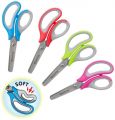 Kvalitní nůžky z nerezové oceli s kulatou špičkou. Asymetrické rukojeti. Velikost: 14 cm. Mix barev.