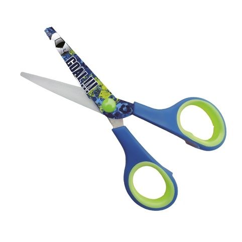 Lehké dětské nůžky s bezpečnými břity a hravým potiskem přímo na čepeli. Díky menším symetrickým otvorům dobře sedí do dětské ruky a podporují správné držení. Jsou ideální na první stříhání ve škole i doma.