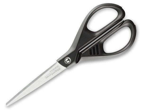 Nůžky vyrobené ze 70 % z recyklovaného materiálu, velikost 17 cm. Nože i nýt z nerezové oceli, symetrické ergonomické rukojeti.