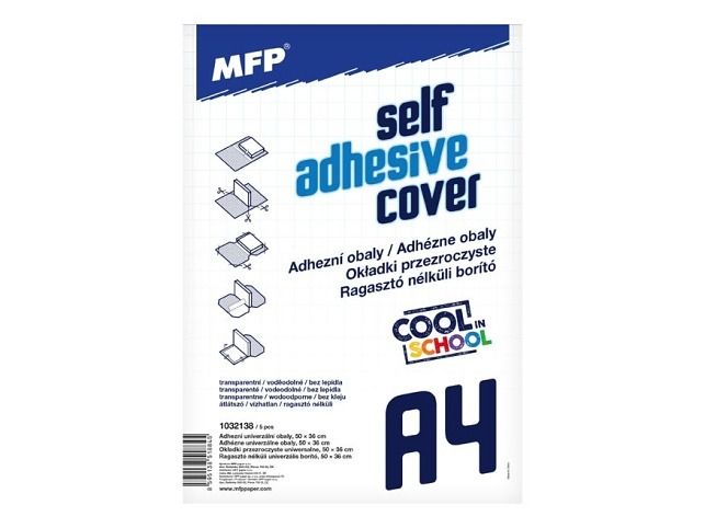 Transparentní adhézní obal o rozměrech 50x36 cm. Již nemusíte řešit velikost sešitu, učebnice nebo knihy a obávat se jestli koupíte ten správný rozměr obalu. Jednoduše obal vystřihnete podle předlohy a ten přilne na obalovaný předmět. Balení obsahuje 5ks.
