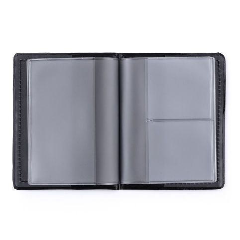 Obal na doklady z elegantní Eko kůže, standartní velikost. Šest napevno přidělaných průhledných kapes, vhodné pro pas, občanský průkaz, řidičský průkaz, kreditní karty, telefonní karty, technický průkaz.