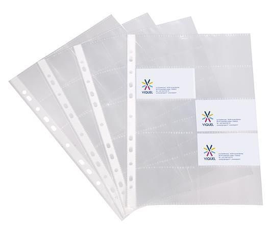 Obal na vizitky, transparentní, A4, 100 micron, 20 vizitek/str., VIQUEL