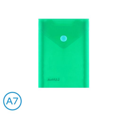 PP materiál- vhodné pro nošení a úschovu dokumentů- zapínání na druk- formát: A7- barva: zelená