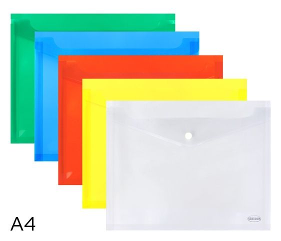 Spisový obal s klopou, zapínání na druk- pro úschovu dokladů a dokumentů- mix barev- rozměr: 33 x 26cm- formát: A4- rozšíření: 1,2cm- tloušťka: 160 mic