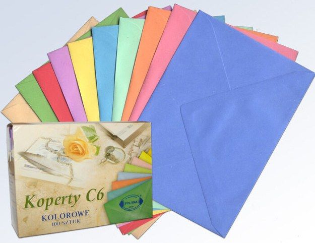 Obálka C6 114 x 162 mm mix barev. Balení 100 ks. Navlhčovací,klasická klopa .