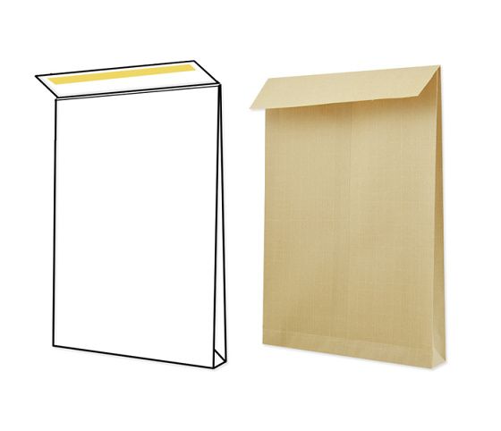 Dopisní obálka - poštovní taška ze sulfátového papíru 120g s textilní výstuhou a křížovým dnem pro zvětšení kapacity. Určeno pro zasílání objemnějších předmětů. Rozšiřitelné dno do 40mm, samolepící s krycí páskou,Formát: B4Rozměr: 250 x 353 mm