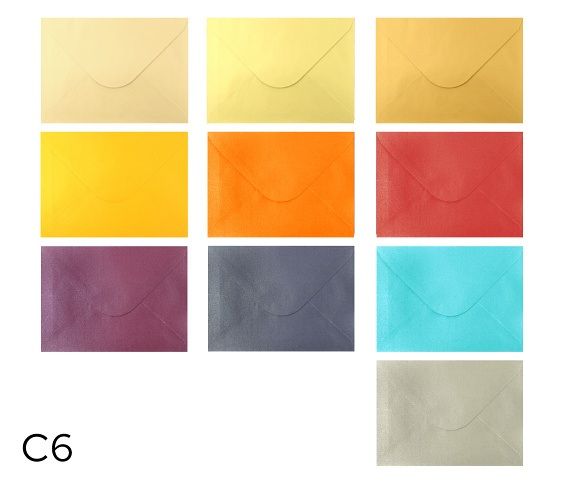 Barevné dopisní obálky- mix metalických barev- formát: C6- rozměr: 160 x 115mm - klopa: šípová, olizová