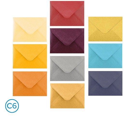 Barevné dopisní obálky- mix metalických barev- formát: C6- rozměr: 160 x 115mm - klopa: šípová, olizová