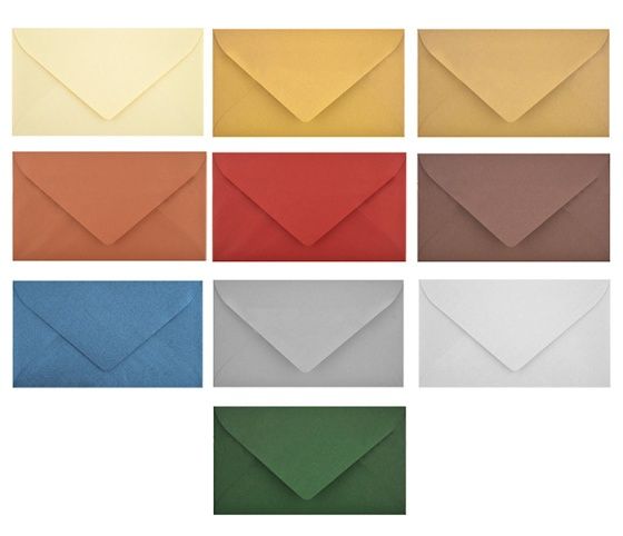 Luxusní metalické obálky na vizitky vyrobené z kvalitního papíru s šípovou klopou. Barva: mix barev Rozměr: 58 x 100 mm