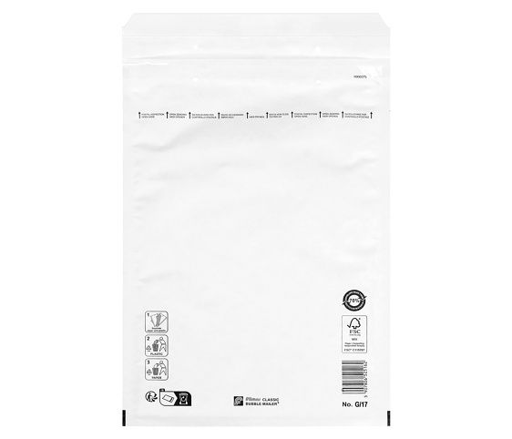 Dopisní bublinkové obálky - univerzální obal pro zasílání citlivých předmětů- kvalitní KRAFT papír, vnitřní výstélka z bublinkové fólie- samolepicí uzávěr- bílé provedení- formát: 17/G- vnitřní rozměr: 230 x 340mm - vnější rozměr: 250 x 350mm