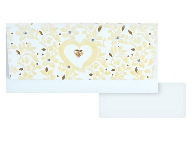 Dárková obálka na peníze pro novomanžele - Udělejte novomanželům radost a věnujte jim obálku s penězi nebo dárkovým poukazem. Uvnitř je kartička bez textu, na kterou můžete napsat věnování. PROVEDENÍ: béžová se zlatými lístečky a srdcem Uvedená cena je za 1 ks.