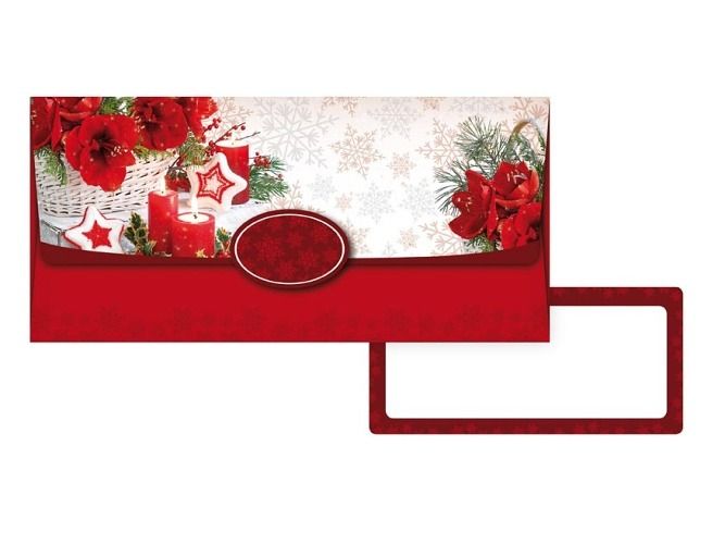 Dárková obálka na peníze s vánočním motivem a uzavíratelnou klopou - Darujte svým blízkým dárek k Vánocům v podobě obálky na peníze. Do obálky lze vložit peníze nebo dárkový poukaz. Uvnitř je kartička bez textu, na kterou můžete napsat věnování. Uvedená cena je za 1 ks.