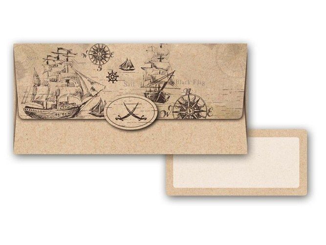 Dárková obálka na peníze s motivem plachetní fregaty - Udělejte oslavenci radost a věnujte mu obálku s penězi nebo dárkovým poukazem. Uvnitř je kartička bez textu, na kterou můžete napsat věnování. Uvedená cena je za 1 ks.