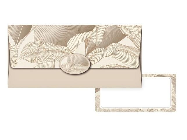 Obálka na peníze s elegantním motivem listů v neutrálních béžových tónech je ideální volbou pro darování finančního obnosu na příležitosti, jako jsou svatby, výročí nebo jiné slavnostní události. Obálka obsahuje kartičku pro případný vzkaz, přání či osobní věnování, čímž dodá vašemu daru osobní nádech. Uzávěr na přední straně spolehlivě zajistí, že obsah zůstane bezpečně uložen. Motiv: listy Barva: béžová Uvedená cena je za 1 ks.