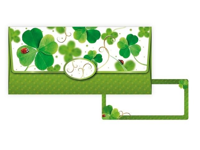 Obálka na peníze – se čtyřlístky pro štěstí Darujte peníze s úsměvem a radostí! Obálka je laděná do svěžích zelených tónů, zdobená čtyřlístky a beruškami – tradičními symboly štěstí a pohody. Skvěle se hodí k narozeninám, svátku, promoci i dalším příležitostem, kdy chcete předat nejen dárek, ale i kousek štěstí navíc. Uvnitř nemusí být jen peníze – obálka je vhodná i na dárkové poukazy, vstupenky, vzkaz nebo krátké přání. Součástí je navíc kartička na osobní věnování, díky které můžete svému dárku dodat ještě více osobního kouzla. Motiv: čtyřlístky, berušky Uvedená cena je za 1 ks.