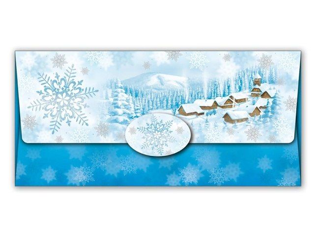 Dárková obálka na peníze s vánočním motivem a uzavíratelnou klopou - Darujte svým blízkým dárek k Vánocům v podobě obálky na peníze. Do obálky lze vložit peníze nebo dárkový poukaz. Uvnitř je kartička bez textu, na kterou můžete napsat věnování. PROVEDENÍ: modro-bílá se zasněženou krajinou a vesničkou Uvedená cena je za 1 ks.