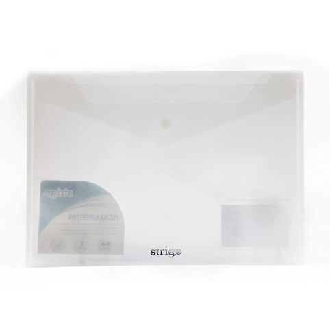 Vyrobeno z lesklého polypropylenu. Horizontální složka A4 s drukem a se 2 kapsami, dostupná v průhledné barvě.