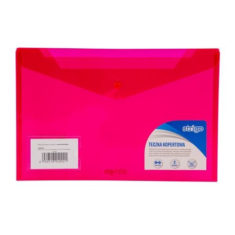 Vyrobeno z lesklého polypropylenu. Horizontální složka A4 s drukem a se 2 kapsami v růžové barvě.