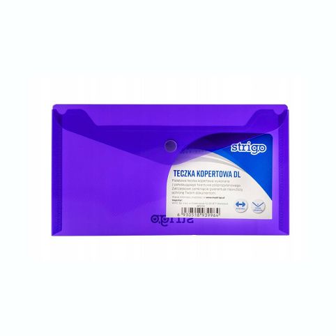 Vyrobeno z lesklého a pevného polypropylenu. Horizontální složka DL s drukem fialová.