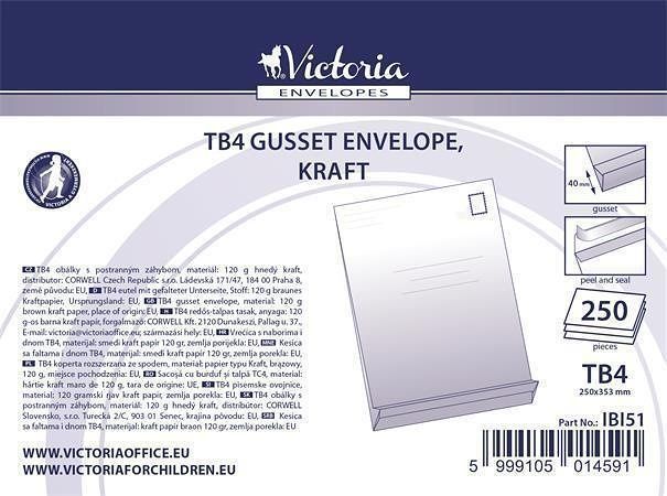 Obálka, TB4, hnědá, samolepicí, 40 mm silná, VICTORIA