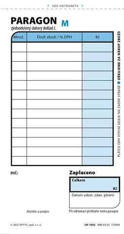 - PAPÍRNICTVÍ / TISKOPISY / ÚČETNÍ A DAŇOVÉ DOKLADY / Paragony / 7,5x15cm / OPTYS