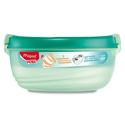 Svačinový box z kolekce Maped Picnik Origins vyrobený z kvalitního a zdravotně nezávadného polypropylenu a ABS. Box má velkou kapacitu pro vydatné hlavní jídlo. Obsahuje hlavní box, menší vyjímatelný vnitřní box a víko. Objem: 1,4 l