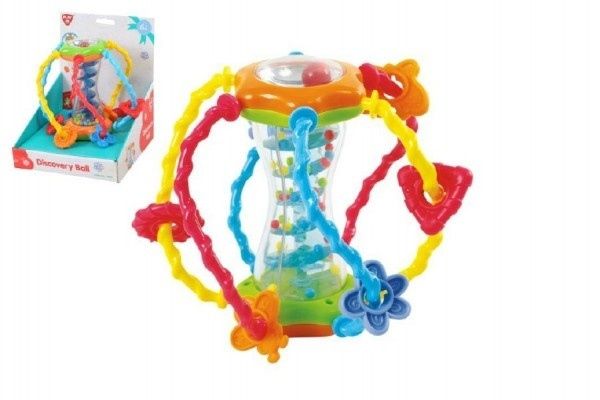 Pestrobarevná edukační koule zaujme děti na první pohled. Koule obsahuje různé tvary, se kterými se děti procvičí jemnou motoriku a uvnitř se po "šneku" koulí malé kuličky.