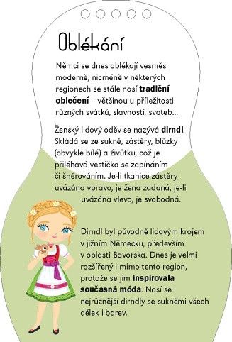 Další titul oblíbené série, která našla své obdivovatele v desítkách zemí světa, představuje malým čtenářům kouzlo Německa prostřednictvím panenky Hanny. Kreativní omalovánky, spousta samolepek… knížka obsahuje vše, co je třeba k vytvoření nesčetných modelů podle německé módy. A k tomu se děti dočtou i spoustu zajímavých informací navrch! Jak se jejich vrstevníci v Německu zdraví, jak se tam učí, na jakých specialitách si pochutnávají? Víte, co je to šukrut nebo jak vypadá dirndl? To a ještě mnohem víc se dozvíte, vydáte-li se za poznáním s našimi panenkami. A ke každé knížce dostanete krásný náramek pro štěstí!