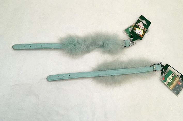 Kožený obojek o délce 35cm. Z jedné strany je ozdobený chmýřím v barvě obojku. Cena za 1kus!