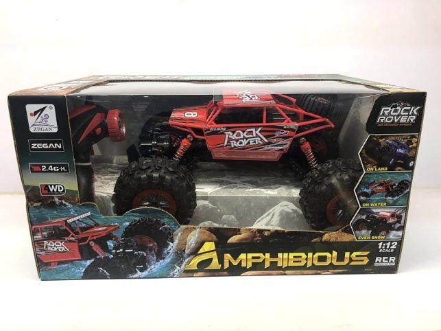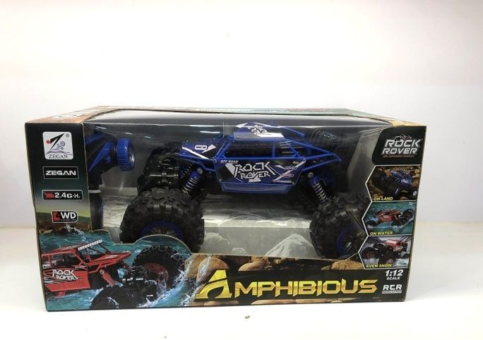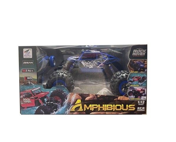 Obojživelník v měřítku 1:12, se kterým lze jezdit na souši i ve vodě. Kola mají perfektní odpružení, auto jezdí na frekvenci 2,4G. Baterie nejsou součástí balení. Velikost auta 35×25×16cm. Dostupné v modré a červené variantě. Na baterie: 9x AA (nejsou součástí balení)