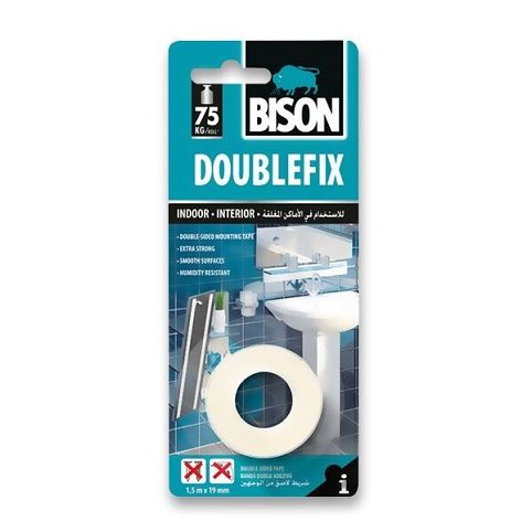 Interiérová oboustranná páska Bison Double fix je vhodná jako náhrada šroubů a hřebíků s trvale vysokou pevností. Extra silná. Vhodná pro hladké povrchy. Určená pro vnitřní prostory. Odolná proti vlhkosti. Odolná vůči teplotám -10 °C až +75 °C. Čisté, snadné a rychlé použití. Nosnost: až 75 kg/roli v závislosti na materiálu a jeho struktuře.