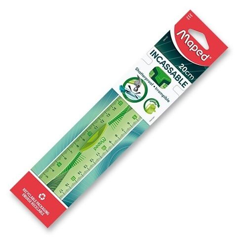 Oboustranné pravítko Maped Unbreakable je vyrobeno ze 100% nárazuvzdorných PET materiálů. Díky ergonomickému úchopu se s tímto pravítkem snadno manipuluje a je umožněno jemné a přesné rýsování. Stupnice vytištěny UV inkoustem pro optimální odpor.