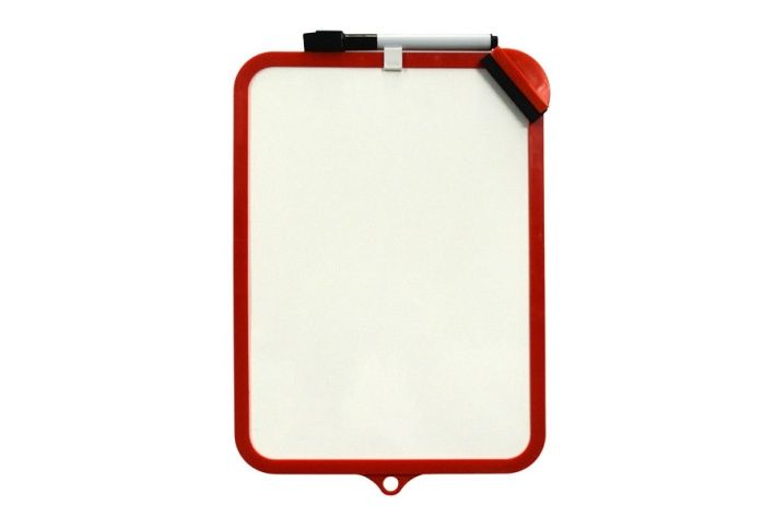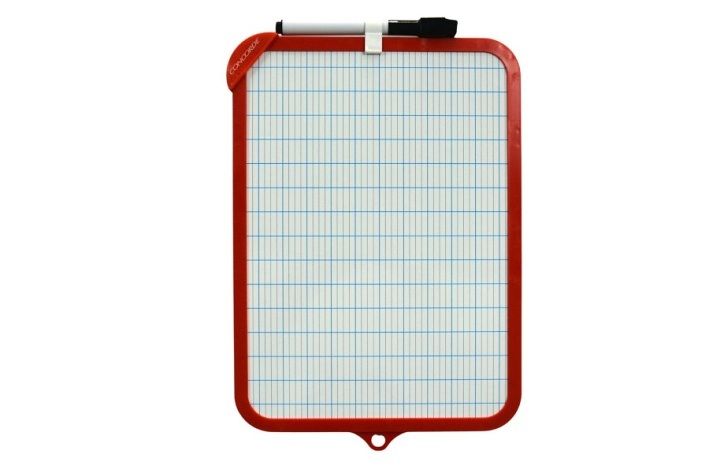 Oboustranne stíratelná tabulka o rozmerech 19 x 29 cm s cerveným rámeckem. Z jedné strany má potisk linek a ctverecku a z druhé strany je hladká a cistá. Tabulka je ideální pro nácvik psaní i kreslení, zejména pri prvních pokusech o psaní. Pomáhá rozvíjet kreativitu, myšlení a motorické schopnosti. Velkou výhodou je možnost snadno smazat jakýkoliv text ci kresbu pomocí houbicky nebo hadríku. Sada obsahuje popisovac s houbickou a samostatnou houbicku na stírání. Tabulka je navíc vybavena ockem pro praktické zavešení.