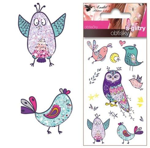 Obtisky s glitry 10,5x6cm ptáčci