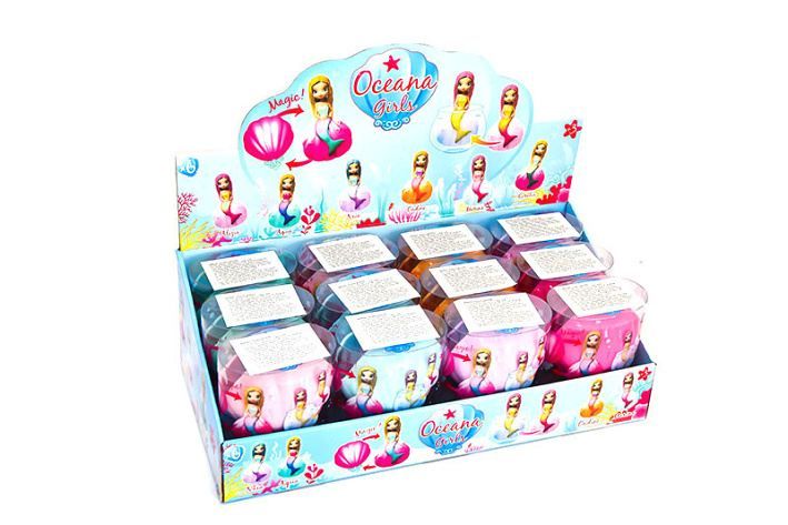 Malá mořská panna, která je ukryta v mušli. Panenka ve vodě mění barvu svého těla.