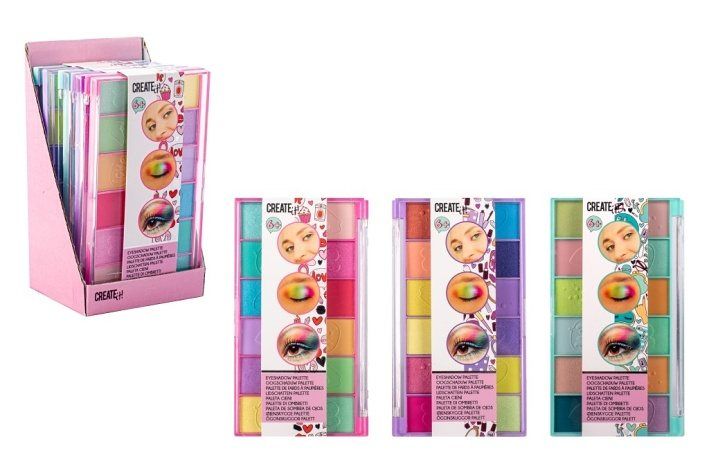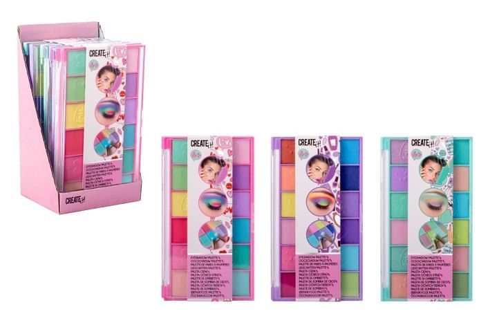 Paleta očních stínů Crea it!!. Paleta obsahuje 12 barev očních stínů ve třech barevných variacích.